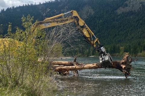 Large woody debris provides critical habitat to fish and invertebrates. Due to the nature and long history of the Libby Dam, large woody debris has been prevented from entering the main stem of the river. During the spring and before high water, root wads and dead trees are collected from above the Libby Dam, transported around it, and deposited in the river below the dam. The logs and root wads will float downstream, hang up on gravel bars, in pools and runs, and improve overall river habitat.
